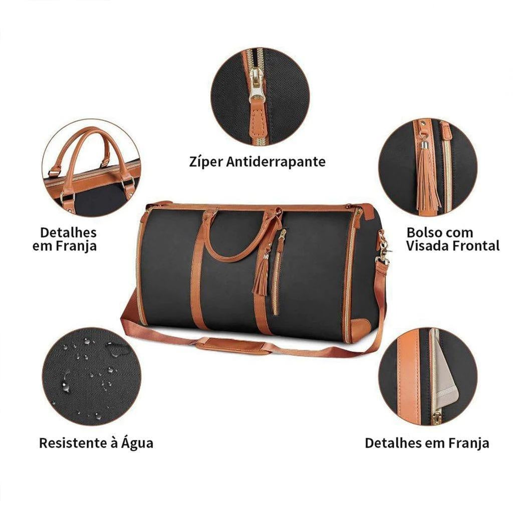 Compacta e funcional, é ideal para viagens curtas, compromissos de negócios, passeios, eventos e uso no dia a dia. E o melhor: pode ser utilizada como bagagem de mão em avião, oferecendo ainda mais praticidade.