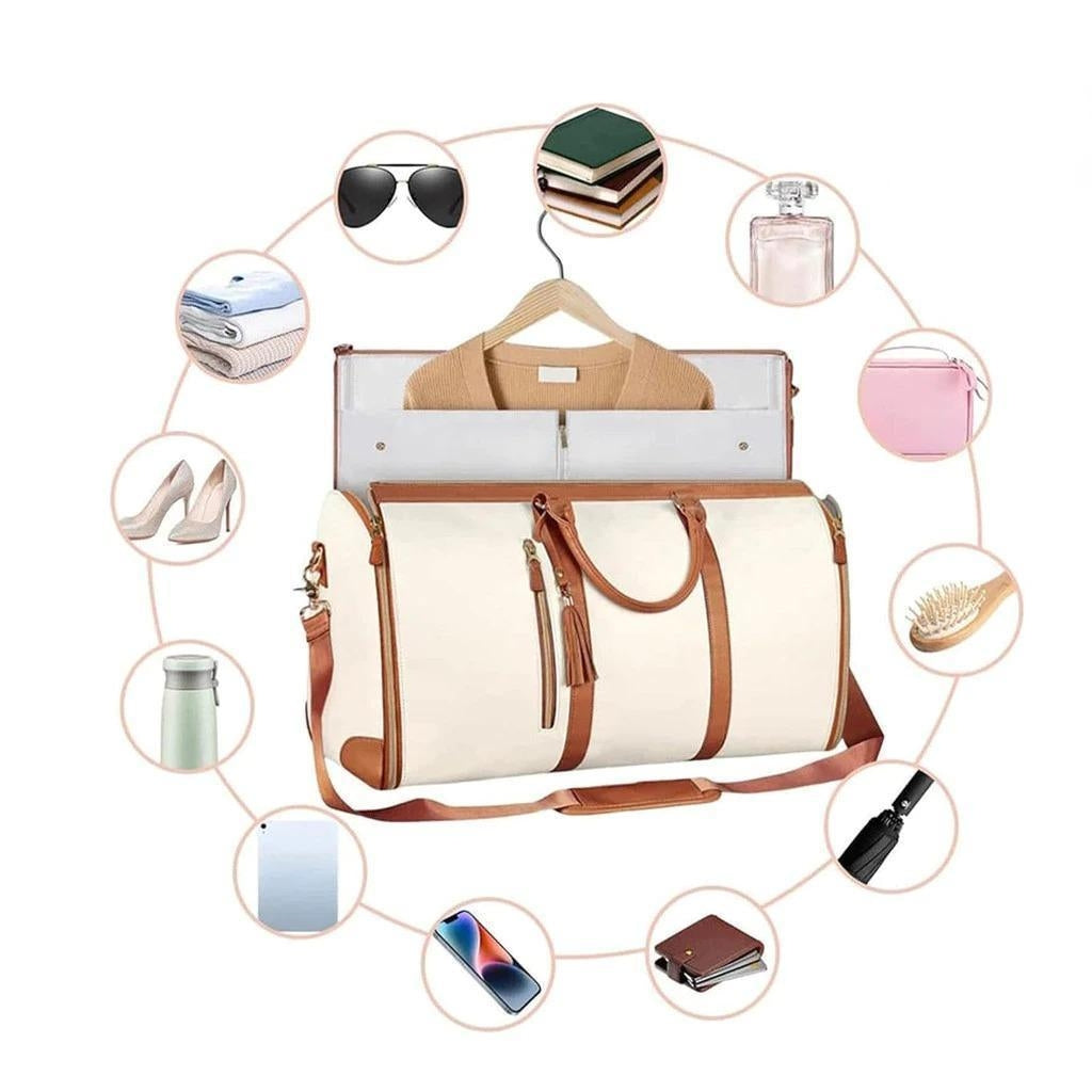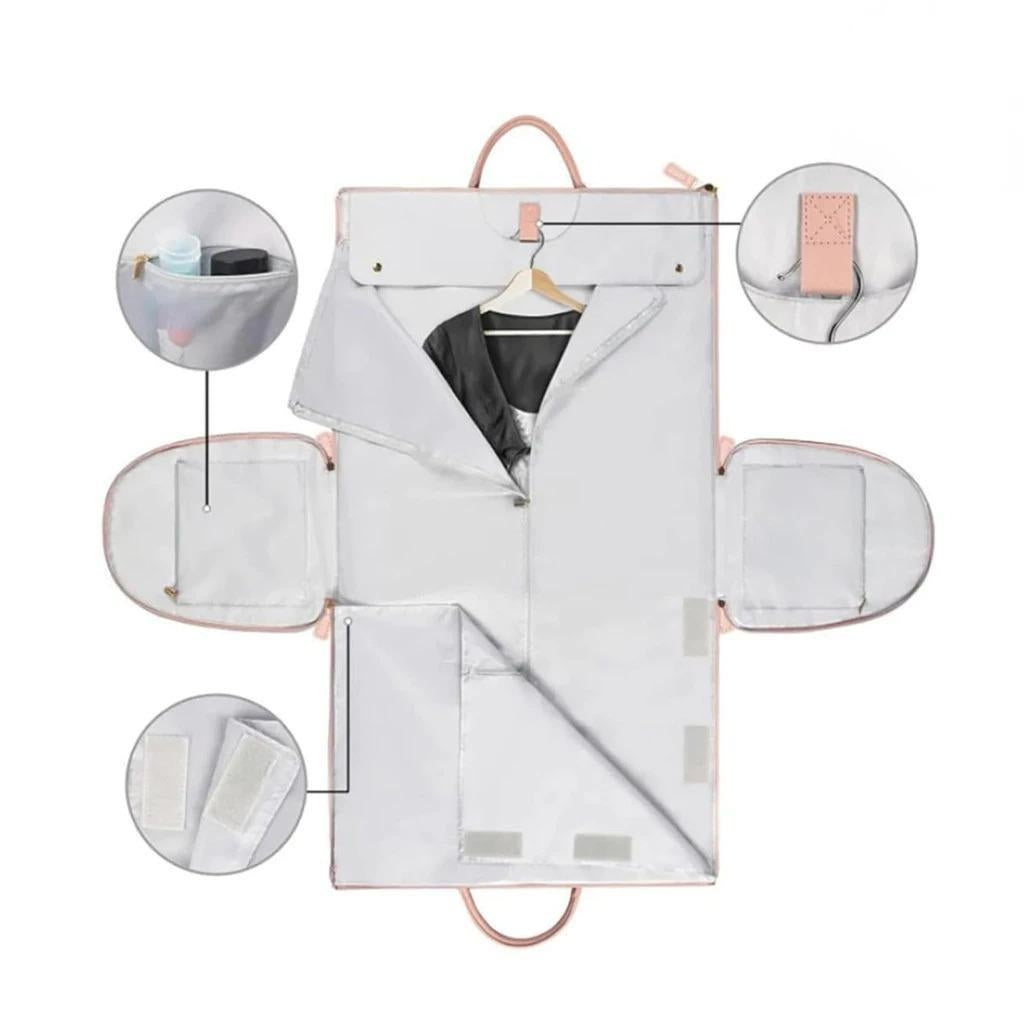 Com um design inovador 2 em 1, ela funciona como uma mala de viagem compacta e, ao mesmo tempo, um porta-terno ou porta-vestido completo. Basta abrir para organizar suas roupas sem precisar dobrar e, ao fechar, ela se transforma em uma mala elegante, espaçosa e fácil de transportar.